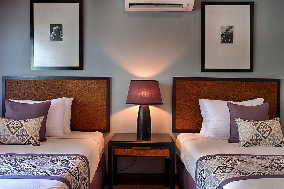 The third bedroom offers two single beds with a shared bathroom.